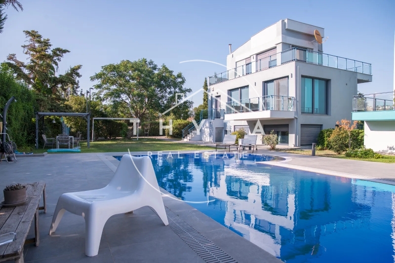 Zur Miete steht eine beeindruckende Luxusvilla mit einer Gesamtfläche von 600 m² in Tagarades, einem Ortsteil von Thermi bei Thessaloniki.